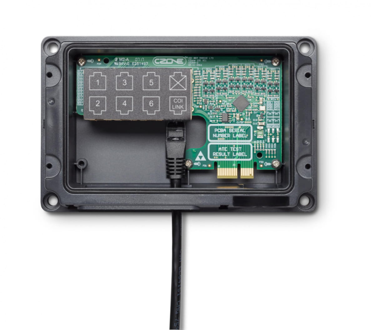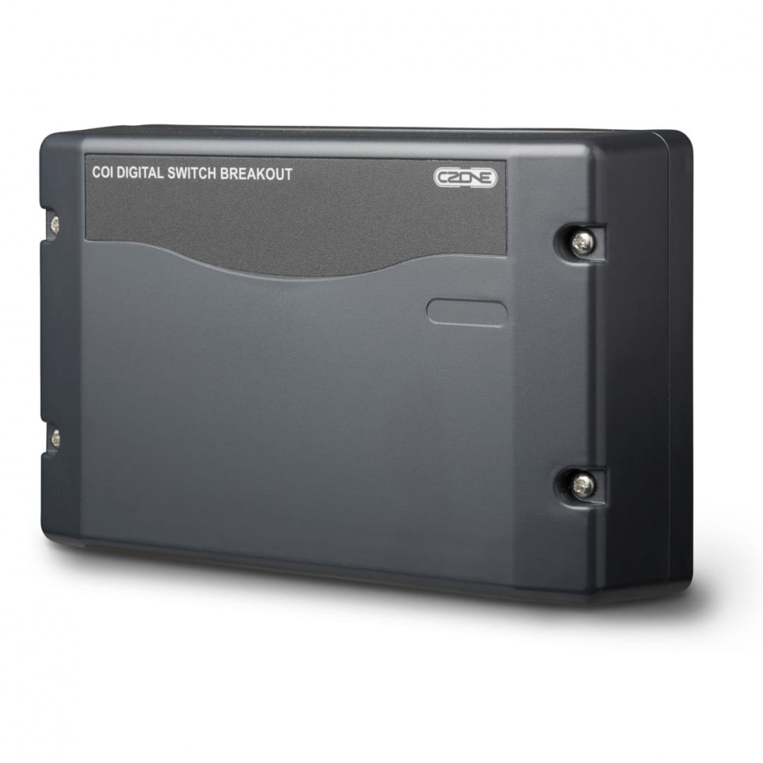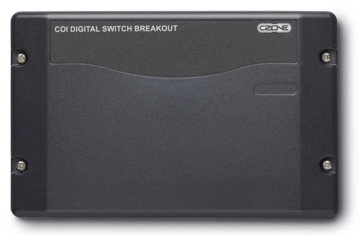COI Digital Switch Breakout (DSB) jest interfejsem pomiędzy Combination Output Interface (COI) a maksymalnie sześcioma przełącznikami cyfrowymi CZone (przycisk lub Rocker). Cyfrowe przełączniki obejmują ściemniane podświetlenie LED, systemy wł., kody usterek oraz wiązkę przewodów typu plug and play, upraszczających instalację.