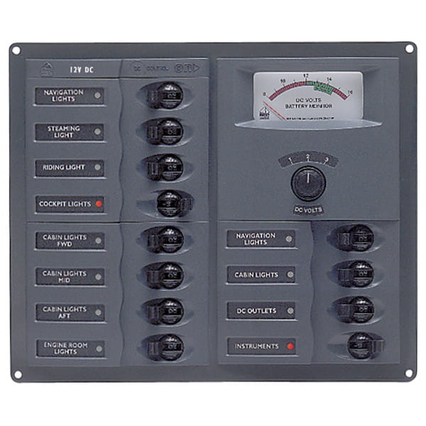 902-AM Rozdzielnica elektryczna 12 obwodowa z woltomierzem 12V