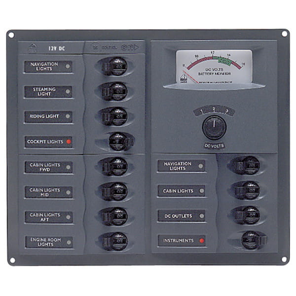 902-AM Rozdzielnica elektryczna 12 obwodowa z woltomierzem analogowym 12V