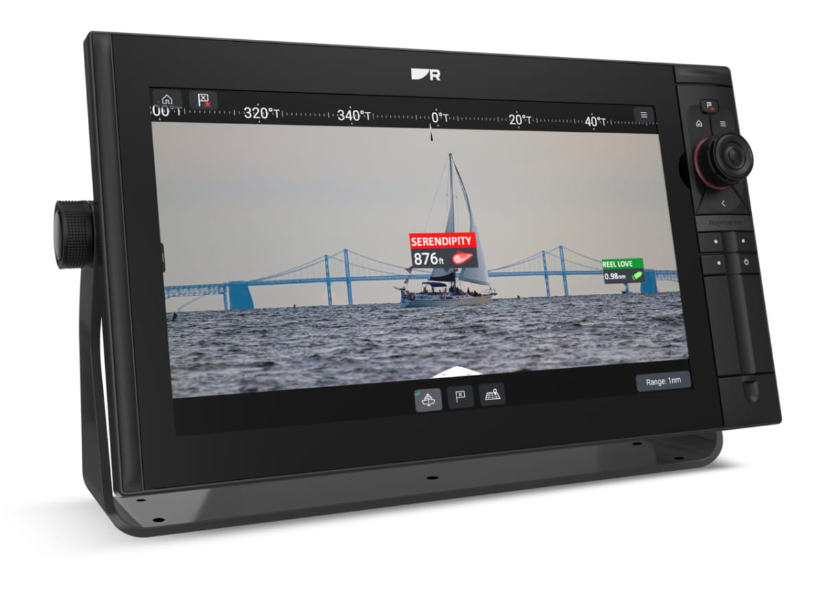 Dodaj CAM300 i czujnik AR200 do rzeczywistości rozszerzonej ClearCruise. Zobacz AIS, punkty nawigacyjne i obiekty mapy nałożone na wideo w wysokiej rozdzielczości.