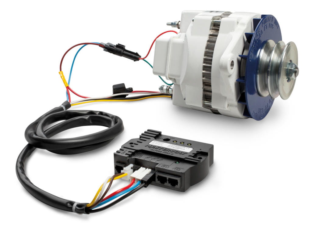 Alternator dostarczany z silnikiem nie jest optymalnie przystosowany do ładowania akumulatorów serwisowych. Zaprojektowany z myślą o niskich kosztach i krótkich cyklach ładowania, ładuje się w wolnym tempie i łatwo się przegrzewa. Zastąpienie standardowego regulatora* przez Alpha Pro III optymalizuje ten proces ładowania, chroni przed przegrzaniem i przeładowaniem oraz przedłuża żywotność akumulatorów.