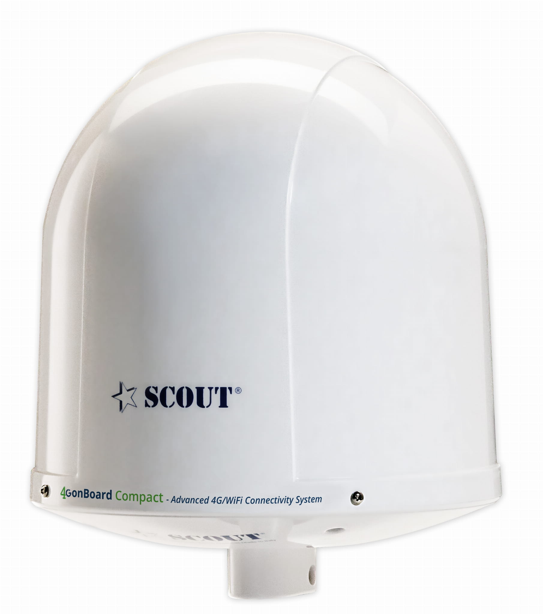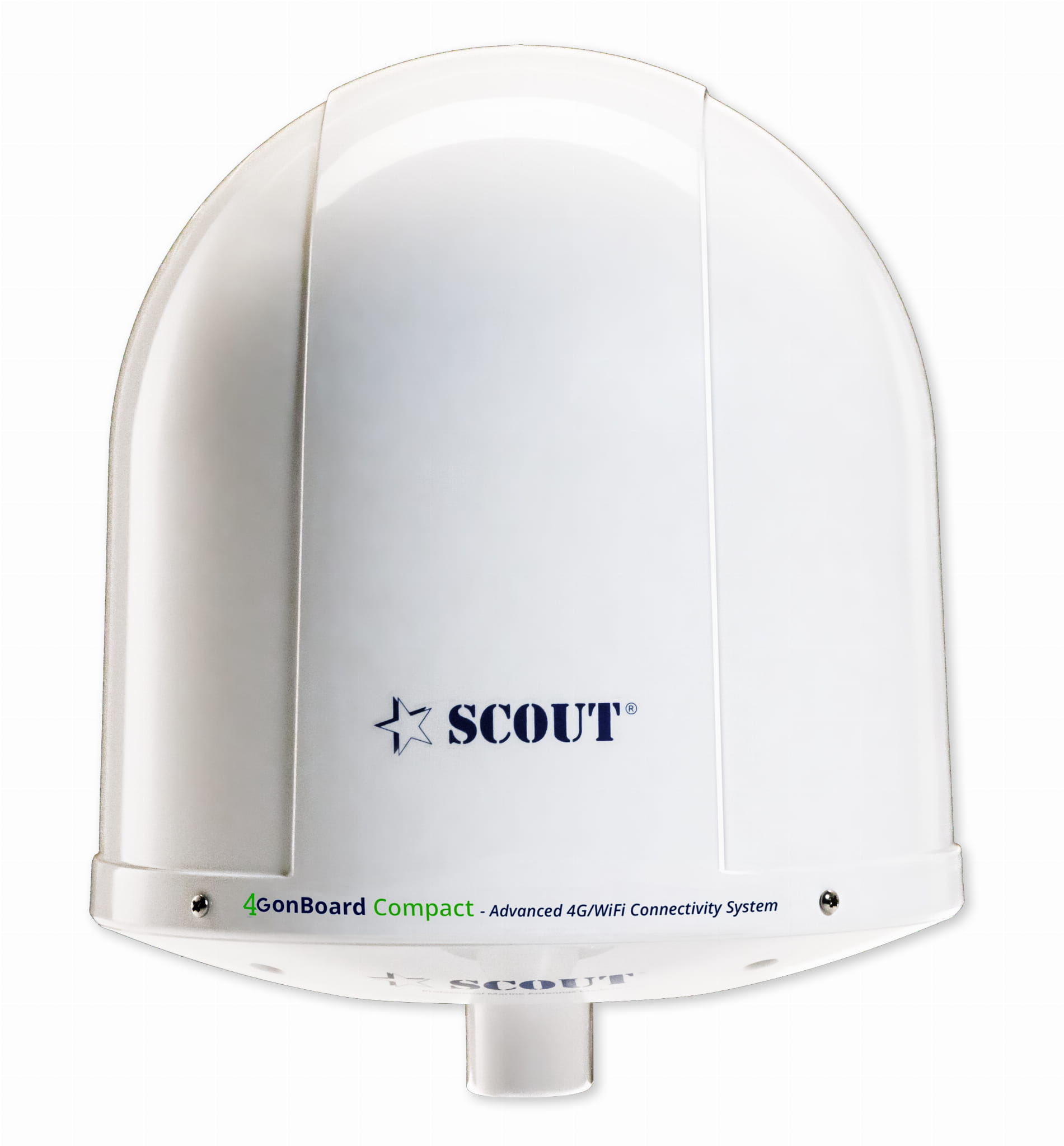 Scout 4G onBoard Compact Basic to kompleksowy system internetowy dla łodzi, który jednocześnie zapewnia łączność 4G dla maksymalnie 150 użytkowników. Kompaktowa kopuła o średnicy 25 cm zapewnia zarówno bezprzewodową, jak i przewodową łączność z Internetem i umożliwia włożenie karty SIM bezpośrednio do gniazda SIM znajdującego się na kopule i chronionego pokrywą IP67. Ponadto kopuła jest wyposażona w port Ethernet LAN CAT6, który może być wykorzystany do skonfigurowania sieci przewodowej na łodzi (zalecane dla większych łodzi i łodzi aluminiowych).