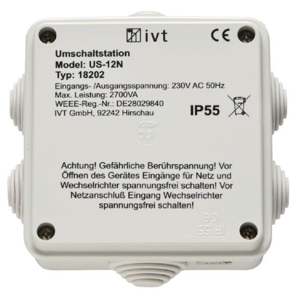 W przypadku korzystania z więcej niż jednego źródła napięcia 230 V nigdy nie należy łączyć kilku źródeł ze sobą. Falownik i/lub generator zostałyby natychmiast zniszczone. Aby temu zapobiec, urządzenie automatycznie przełącza się między dwoma podłączonymi źródłami zgodnie z określonym priorytetem. Maksymalna zdolność łączeniowa to 12 A.