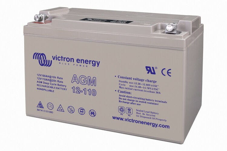 AGM oznacza Absorbent Glass Mat. W tych akumulatorach elektrolit jest wchłaniany przez maty z włókna szklanego między płytami na zasadzie działania kapilarnego. Jak wyjaśniono w naszej książce „Energy Unlimited”, akumulatory AGM są bardziej odpowiednie do krótkotrwałego dostarczania dużych prądów niż akumulatory żelowe.