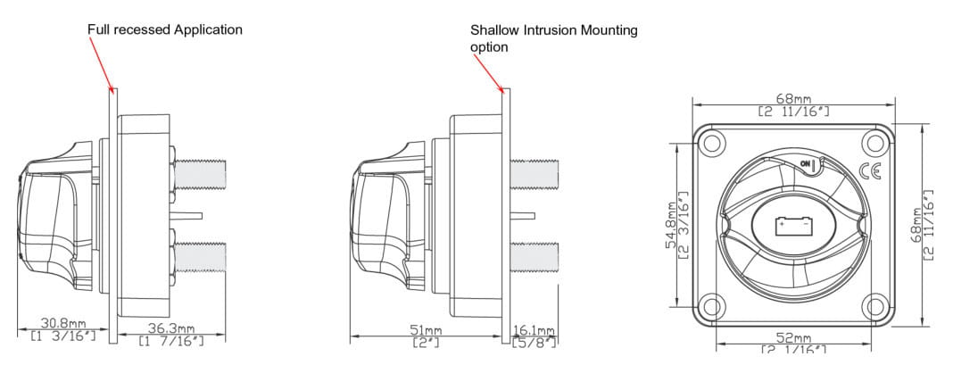 - Standardowy otwór do wycięcia o średnicy 52mm (2-1/16 cala) (takie samo jak w przypadku standardowego otworu na przyrząd)