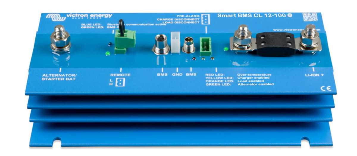 Smart BMS CL 12/100 to system Zarządzania Akumulatorami dla inteligentnych akumulatorów Victron litowo-żelazowo-fosfatowych (LiFePO4). Opracowano go z myślą o instalacjach 12 V z alternatorem 12 V.
