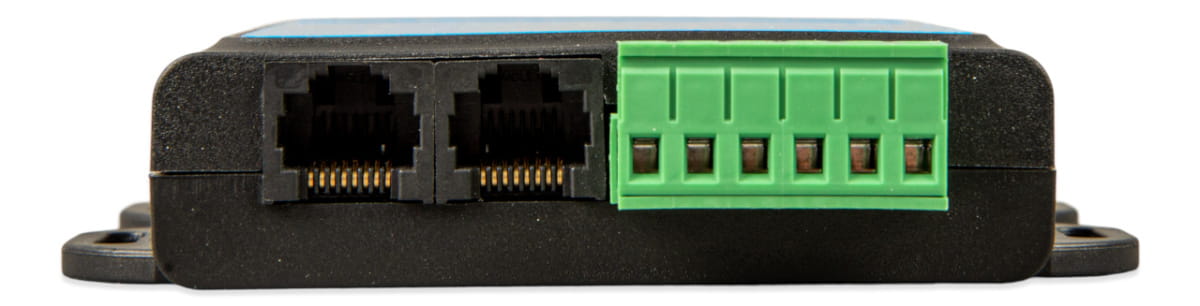- Dodatkowe zaciski wejścia i wyjścia zasilania, które zapewniają urządzeniu GX zasilanie w przypadku wyłączenia systemu.