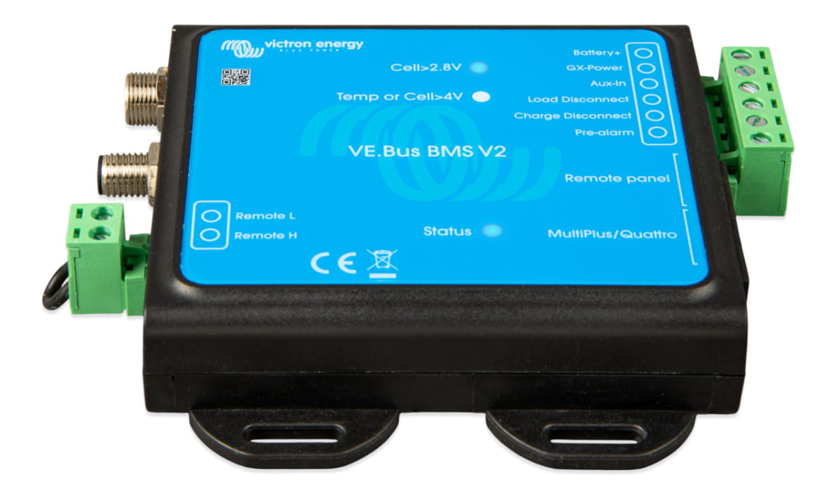VE.Bus BMS i VE.Bus BMS V2 to układy zarządzania akumulatorami (BMS) zaprojektowane do obsługi jednego lub kilku akumulatorów litowych Victron Lithium Battery Smart 12,8 V lub 25,6 V (LiFePO4 lub LFP) w systemach wyposażonych w falowniki Victron lub falowniki/ładowarki z komunikacją VE.Bus. Układ tego rodzaju monitoruje i chroni akumulatory przed przepięciami i zbyt niskim napięciem każdego z ogniw, a także zbyt wysoką lub niską temperaturą.