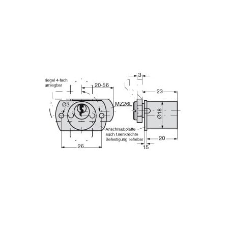 BURG-WÄCHTER zamek ryglowy obrotowy - mosiężny Ms-Zyl. L20x18D
