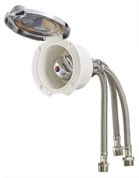 Armatura miksera wykonana z chromowanego mosiądzu i 3 przyłącza węża, każde 20 cm