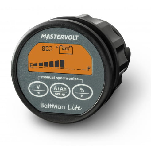 Monitor baterii, 12/24 V DC z dużym, bryzgoszczelnym wyświetlaczem (IP65) i paskiem mocy.