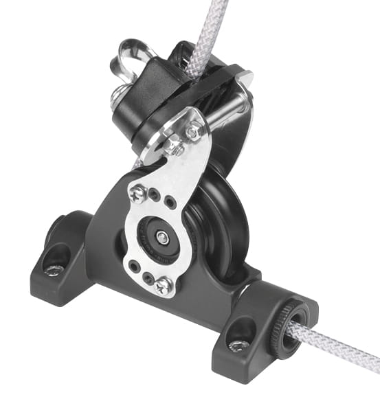 Rolka obraca się na poziomym łożysku. Tego rodzaju rozwiązania obniża wysokość liny przebiegającą nad pokładem i obniża obciążenia boczne działające na blok. Kierunek liny biegnącej do kabestanu nie zmienia się nawet jeśli rolka nie jest ustawiona w linii. Cały korpus wykonany z twardego anodyzowanego aluminium. Rolka podwójnie łożyskowana wykona z kompozytu. P>
