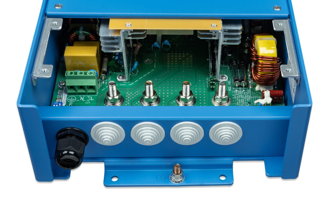 Trzy izolowane wyjścia mogą niezależnie ładować trzy banki baterii. Każde wyjście może być obciążone prądem w pełnym zakresie.