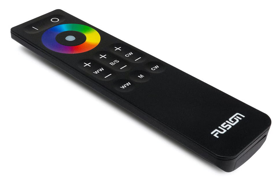 Wzbogać swoje wrażenia z rozrywki audio na wodzie dzięki oświetleniu CRGBW klasy premium. Bezprzewodowy pilot MS-CRGBWRC pozwala cieszyć się pełną kontrolą opcji podświetlenia LED głośników i subwooferów Fusion CRGBW.