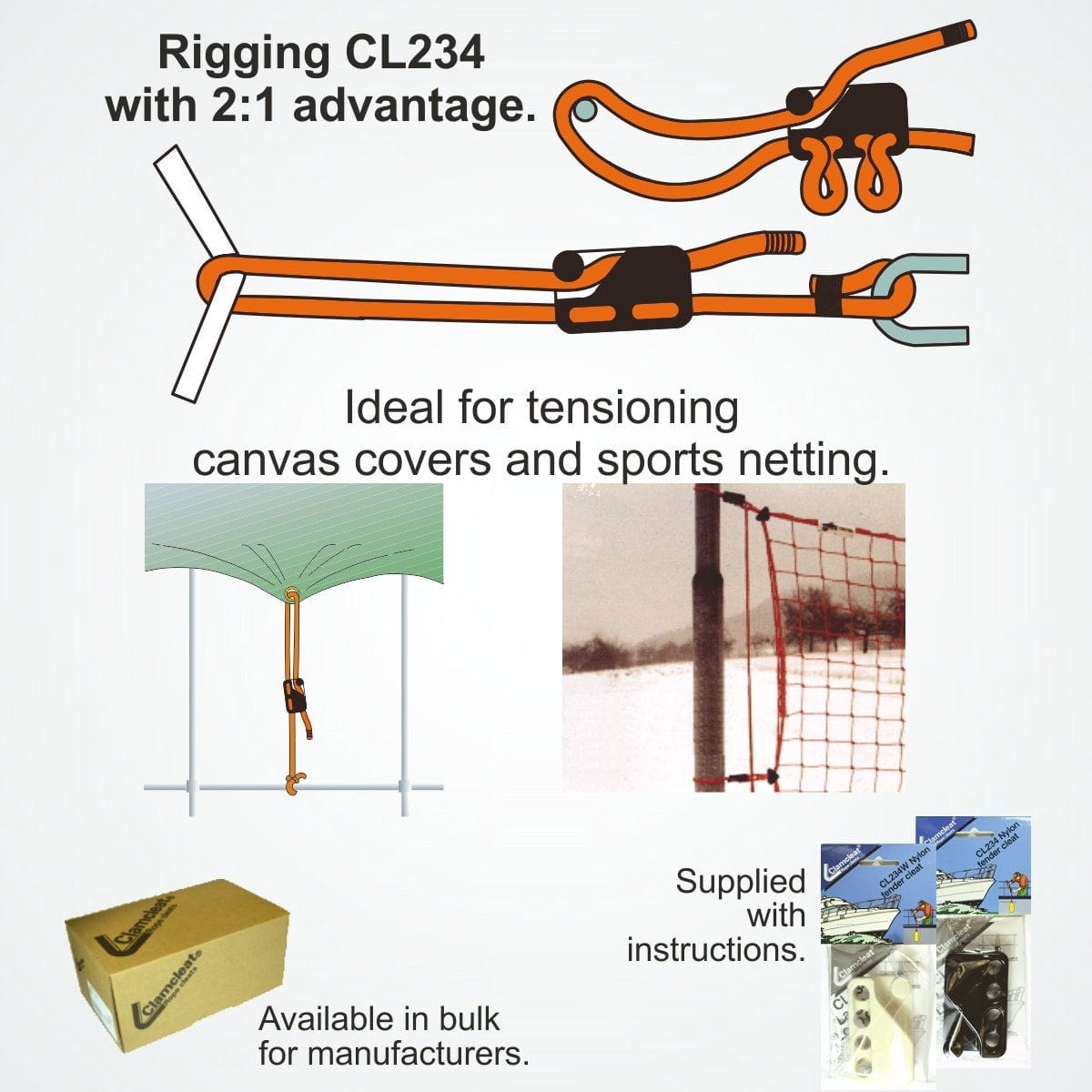 Do szybkiego mocowania linki do relingu bez węzłów.