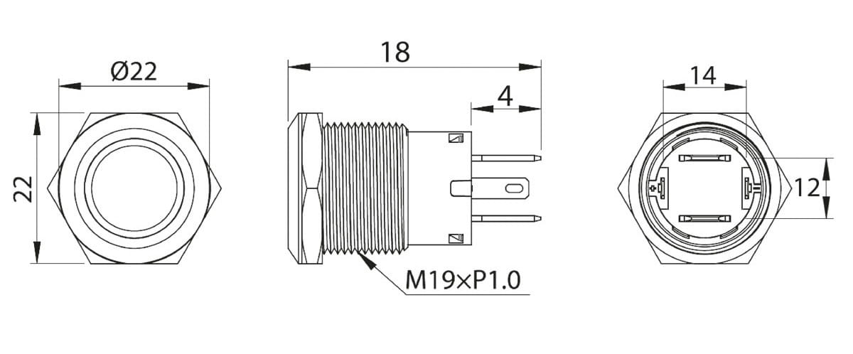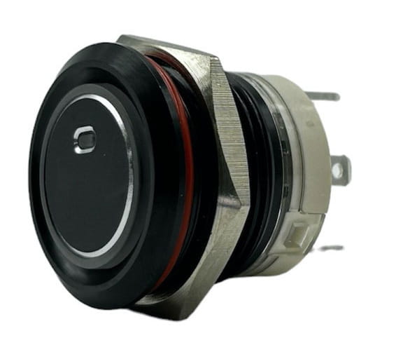 Obudowa wykonana z aluminium malowanego na czarno. 20A 9-24V. IP67. Trwałość 20.000 cykli.