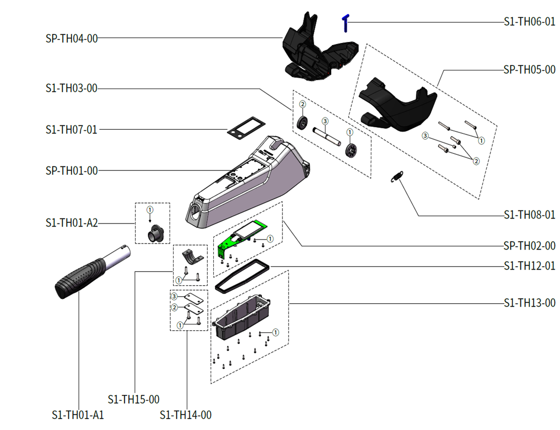 | ① | S1-TH03-01 | Złącze osi obrotu uchwytu, Lewy | 1 | |