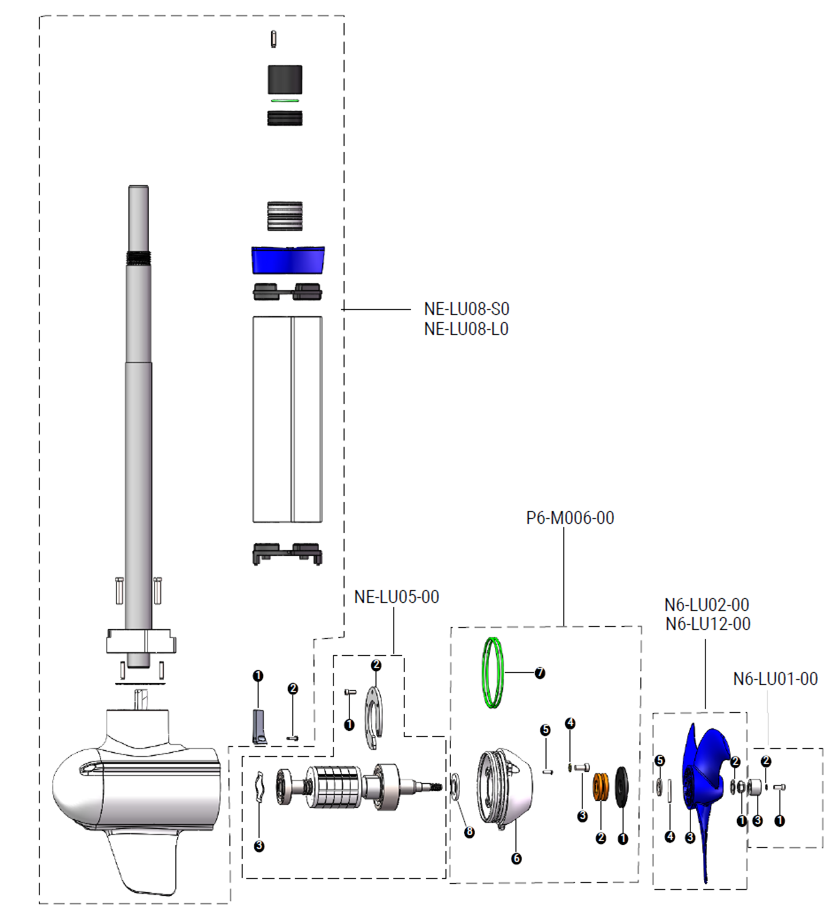 | 5 | NE-LU08-S0 | N6E Motor Base Assy. Shortshaft | 1 Zestaw | |