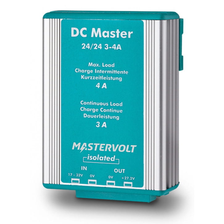 Napięcie wymagane dla prądu stałego (DC) może znacznie się różnić. Niektóre oprzyrządowanie wymaga 24 V, podczas gdy oprzyrządowanie na pokładzie zazwyczaj wymaga 12 V. By dopasować natężenie prądu DC do potrzeb, Mastervolt oferuje serię kompaktowych i dopasowanych konwerterów DC-DC zarówno dla systemów baterii 12 V jak i 24 V, które oferują stabilną moc z odpowiednim natężeniem prądu dla każdego podłączonego odbiornika. Dostępna jest szeroka gama konwerterów DC Master, iw tym modele z izolacją i bez.