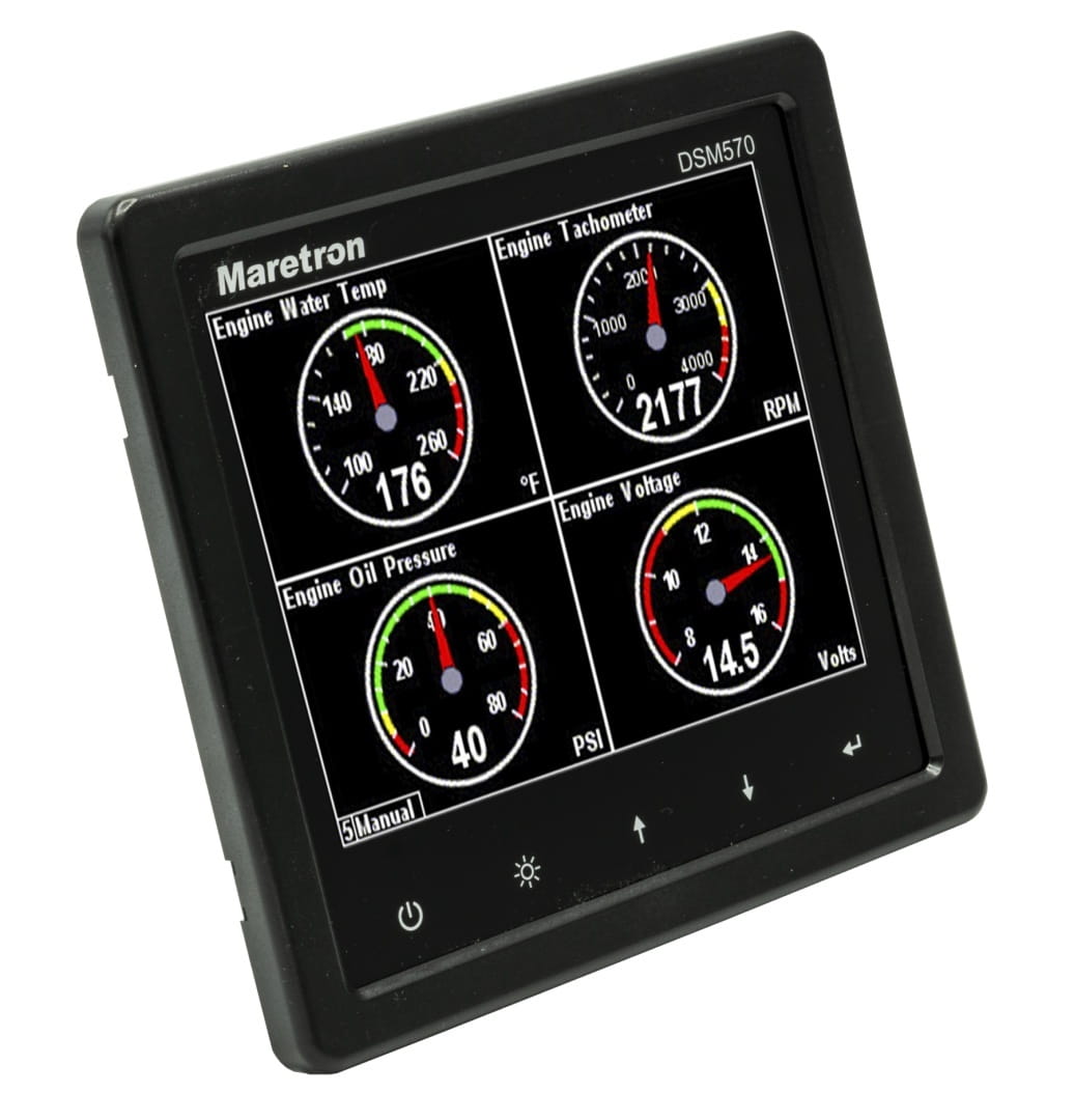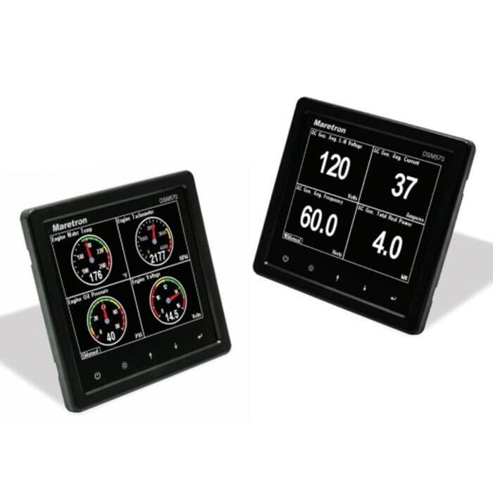 Maretron DSM570 to kolorowy wyświetlacz o wysokiej rozdzielczości, czytelny w świetle słonecznym, który umożliwia łatwą interpretację danych z instrumentów i nawigacji NMEA 2000 poprzez niestandardowe konfiguracje wyświetlania, wyposażone w łatwą w obsłudze, pięcioklawiszową, podświetlaną klawiaturę.