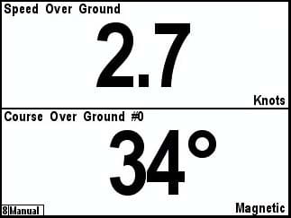 - Prędkość (przez wodę, nad dnem, dziennik całkowity, dziennik podróży)