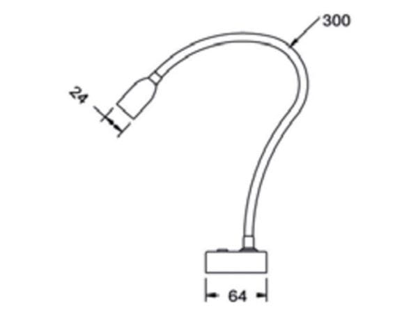 Elastyczna lampka z plastikową nasadką i podstawą. Ramię wykonane z chromowanego metalu.
