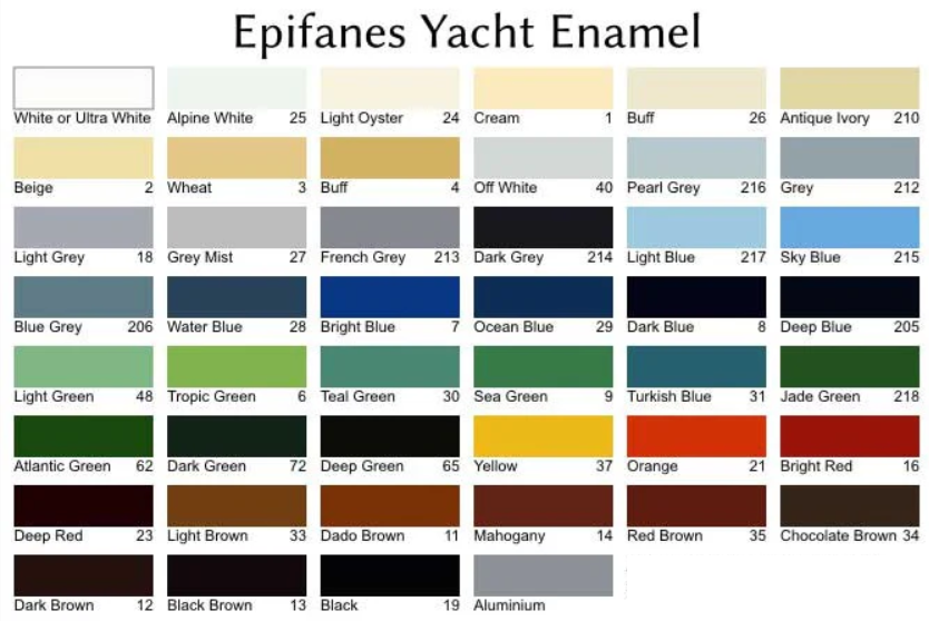 Zastosowane lśniące pigmenty w połączeniu z płynną żywicą zapewniają znakomitą zdolność pokrywania, elastyczność, trwały połysk i kolor oraz znakomitą rozlewność. Farba ta może być użyta na drewno, laminat, stal i aluminium po zastosowaniu Epifanes Multi Marine Primer lub jako farba renowacyjna dla dobrze przylegających, odtłuszczonych i przeszlifowanych powłok jednoskładnikowych.