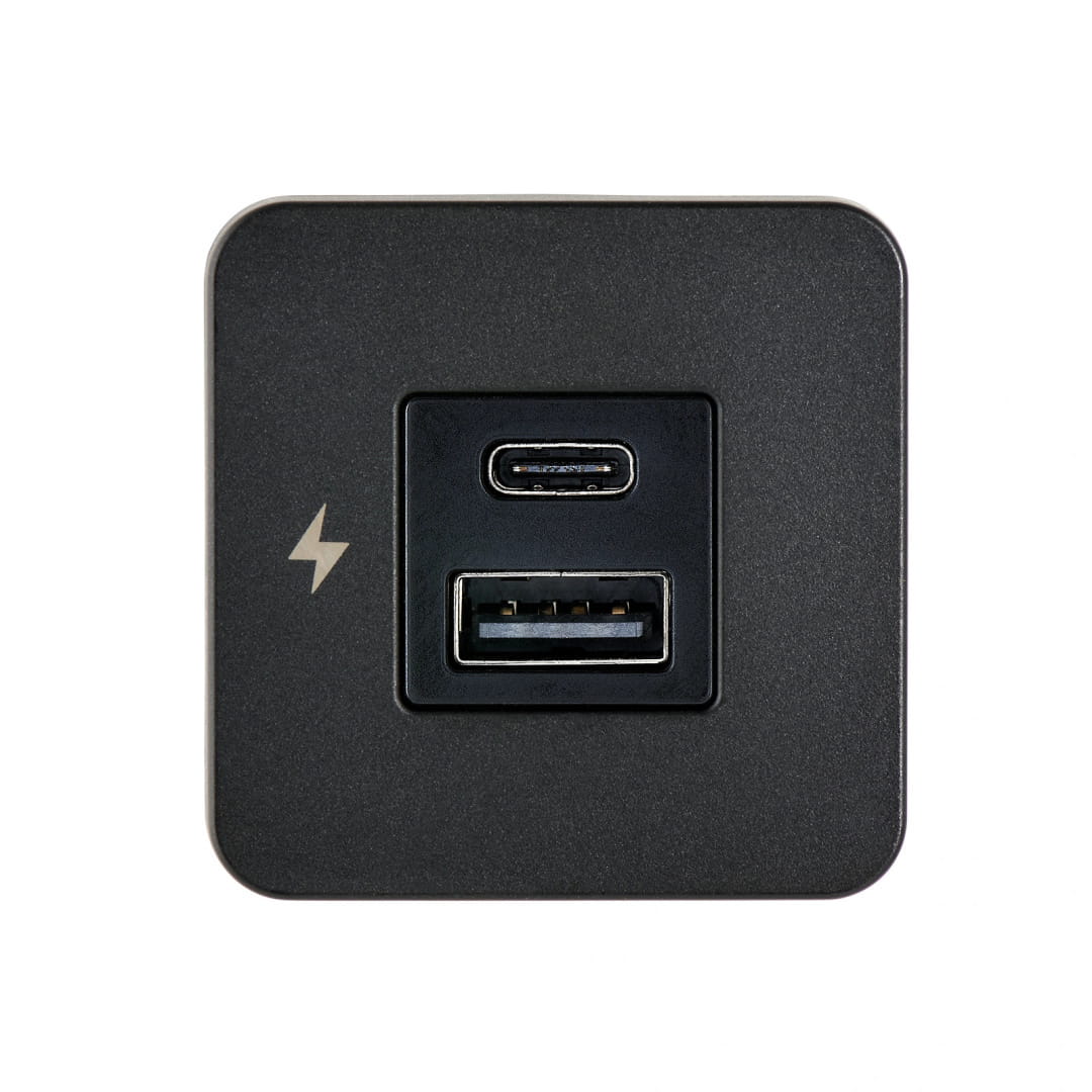 Gniazdo ładowania USB-A i C 12/24V, wewnętrzne, z czarną ramką, seria TILE
