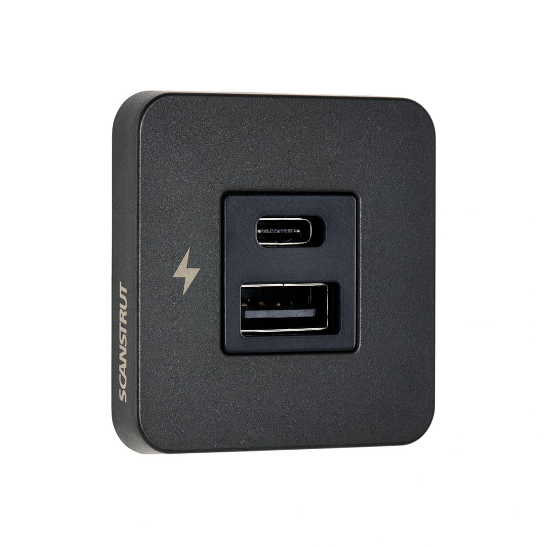 SC-TILE-10 Gniazdo ładowania USB-A i C 12/24V, wewnętrzne, z czarną ramką, seria TILE