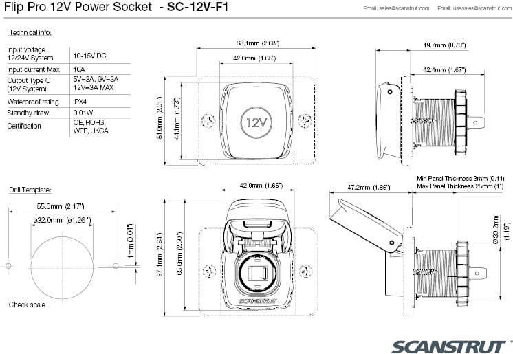 SC-12V-F1 Gniazdo zapalniczki Flip Pro 12V Power