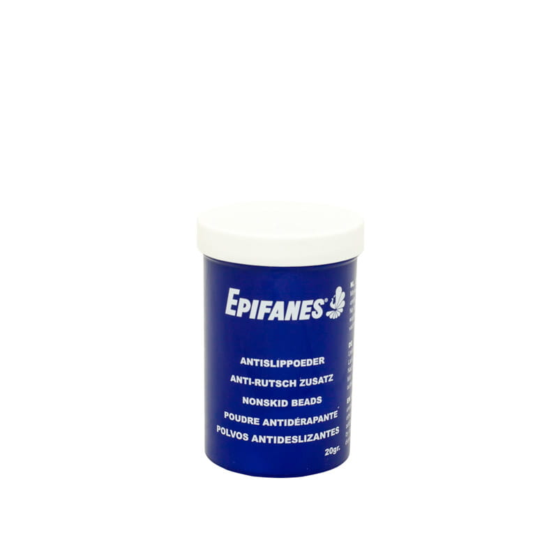 Granulat przeciwpoślizgowy polipropylenowy przeznaczony do farb Epifanes Mono-urethan i Epifanes Poly-urethan - zapewnia trwałą powłokę przeciwpoślizgową. Łatwy w użyciu proszek pozwala na uzyskanie idealnej powłoki w dowolnym kolorze. Dzięki drobnej strukturze jest bezpieczny dla kolan żeglarzy i ich sztormiaków, mimo to zapewniając trwałą skuteczną strukturę antypoślizgową. Opakowanie 20 g granulatu wystarcza na standardową puszkę 750 ml.