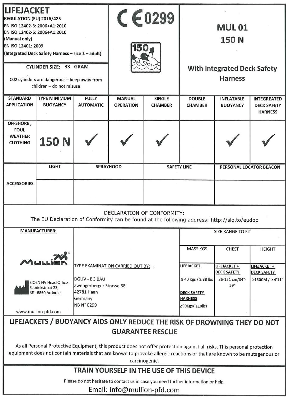 Kamizelka ogólnego zastosowania zaprojektowana specjalnie dla żeglarzy, wyposażona w zwalniak hydrostatyczny Hammar MA1. Aktywuje się automatycznie dopiero po pełnym zanurzeniu, co eliminuje ryzyko przypadkowego napełnienia przez deszcz czy falę. Spełnia normę EN ISO 12402-3 i przeznaczona jest do ciągłego noszenia.