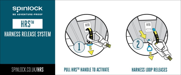 Rewolucyjny system uwalniania uprzęży HRS™ jest opcja szybkiego zwolnienia linki bezpieczeństwa, która może uratować życie w pewnych, awaryjnych sytuacjach. Przepisy morskie wprowadzają wymóg noszenia noża. Jednak noże często mogą być niedostępne i trudne do użycia w sytuacjach krytycznych. Spinlock HRS ™ jest ukryty, a jednocześnie łatwy do znalezienia i prosty w obsłudze. Jest to pierwszy w branży projekt, który po krótkim pociągnięciu otwiera połączenie uprzęży z miękką pętlą i zwolnienie użytkownika.