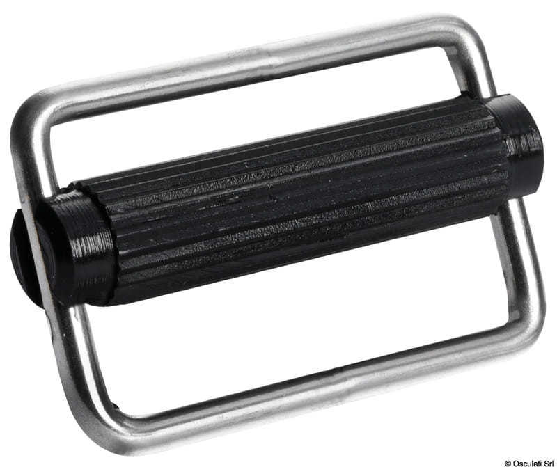 Klamra ze stali nierdzewnej. Elementy przesuwne wykonane są z czarnego nylonu. Do różnego użytku.