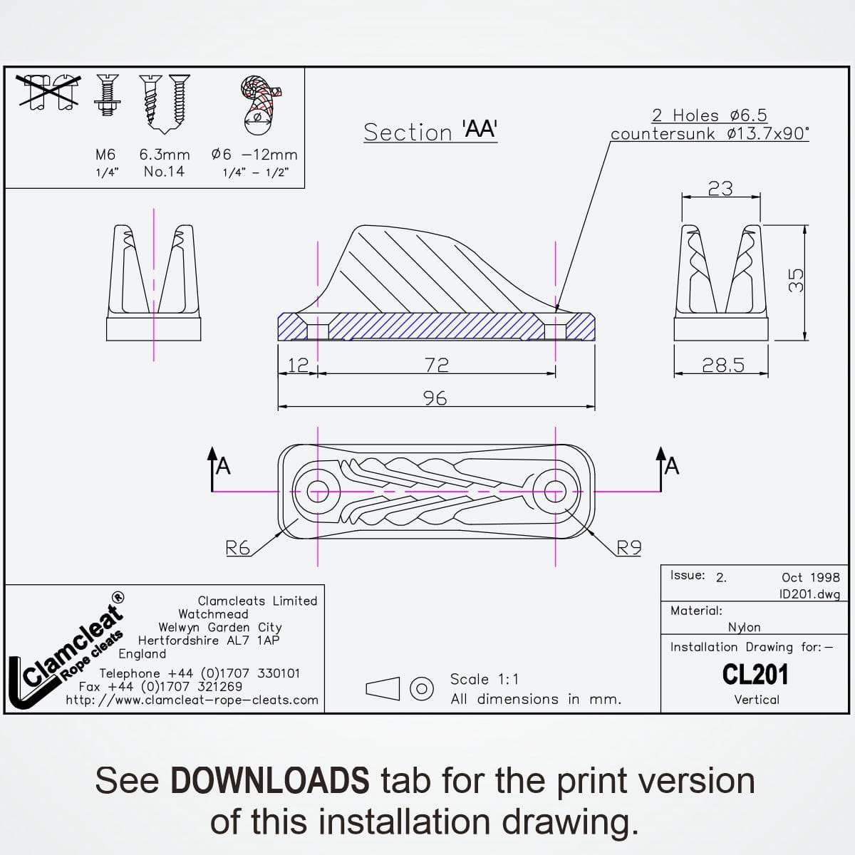 Knaga Clamcleat CL201 pionowa