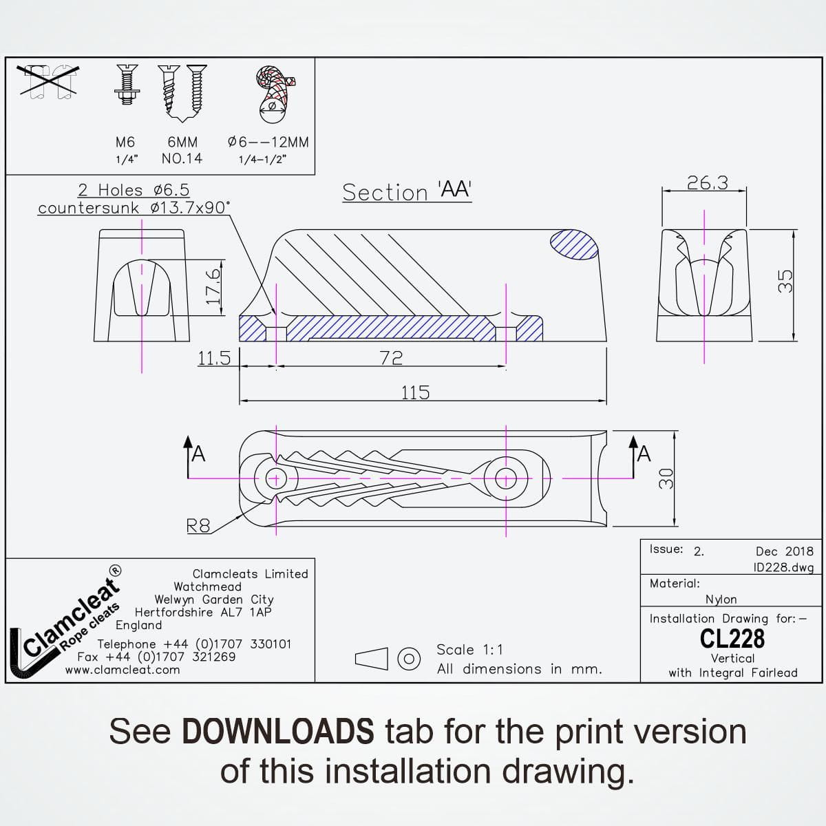 Knaga Clamcleat CL228 pionowa ze zintegrowanym otworem prowadzącym