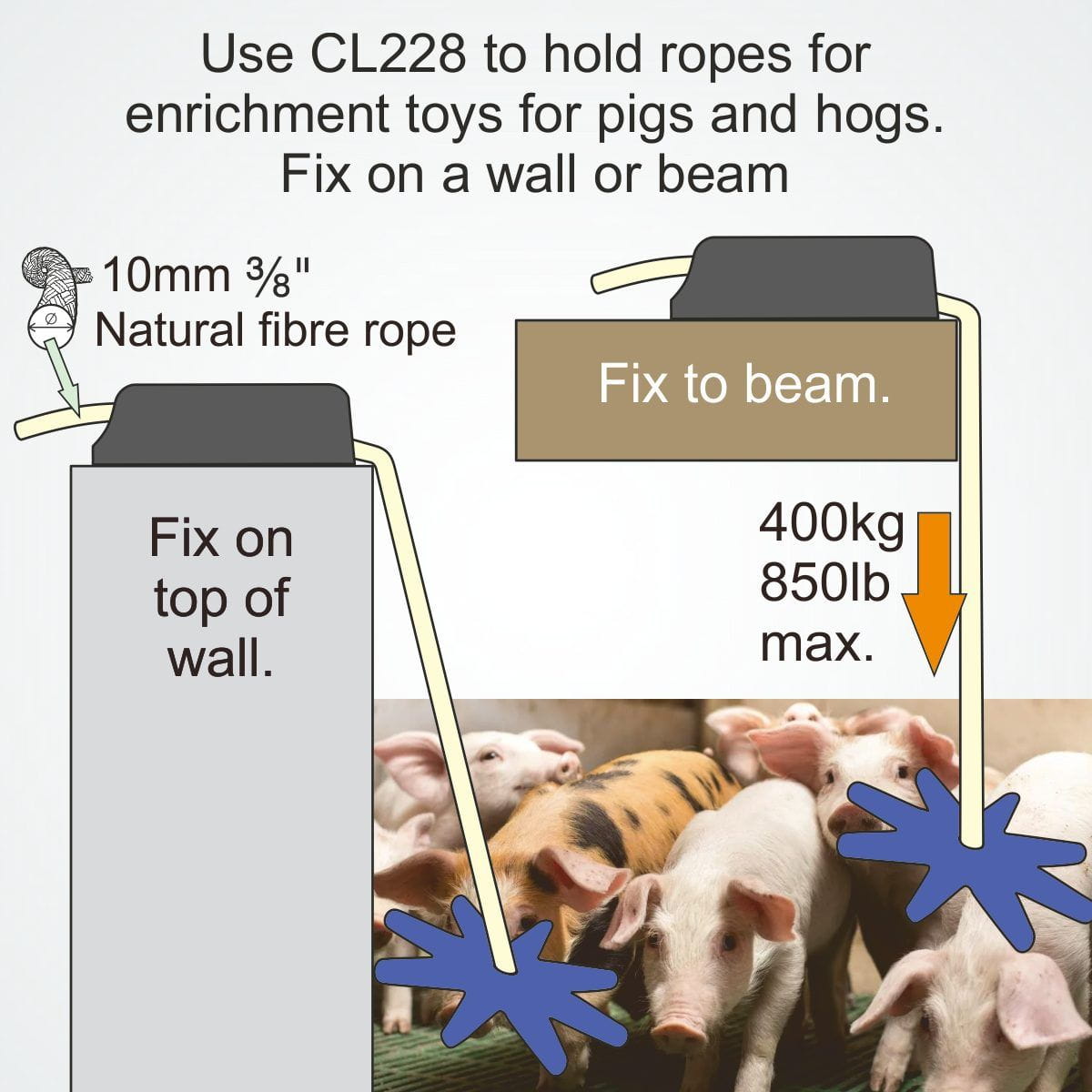 Kompaktowy zacisk z czarnego nylonu ze zintegrowanym otworem prowadzącym, który wprowadza linę w zęby. Idealny do krępowania zwierząt, zastosowań morskich i rolniczych. CL228 jest odporny na warunki atmosferyczne i korozję.