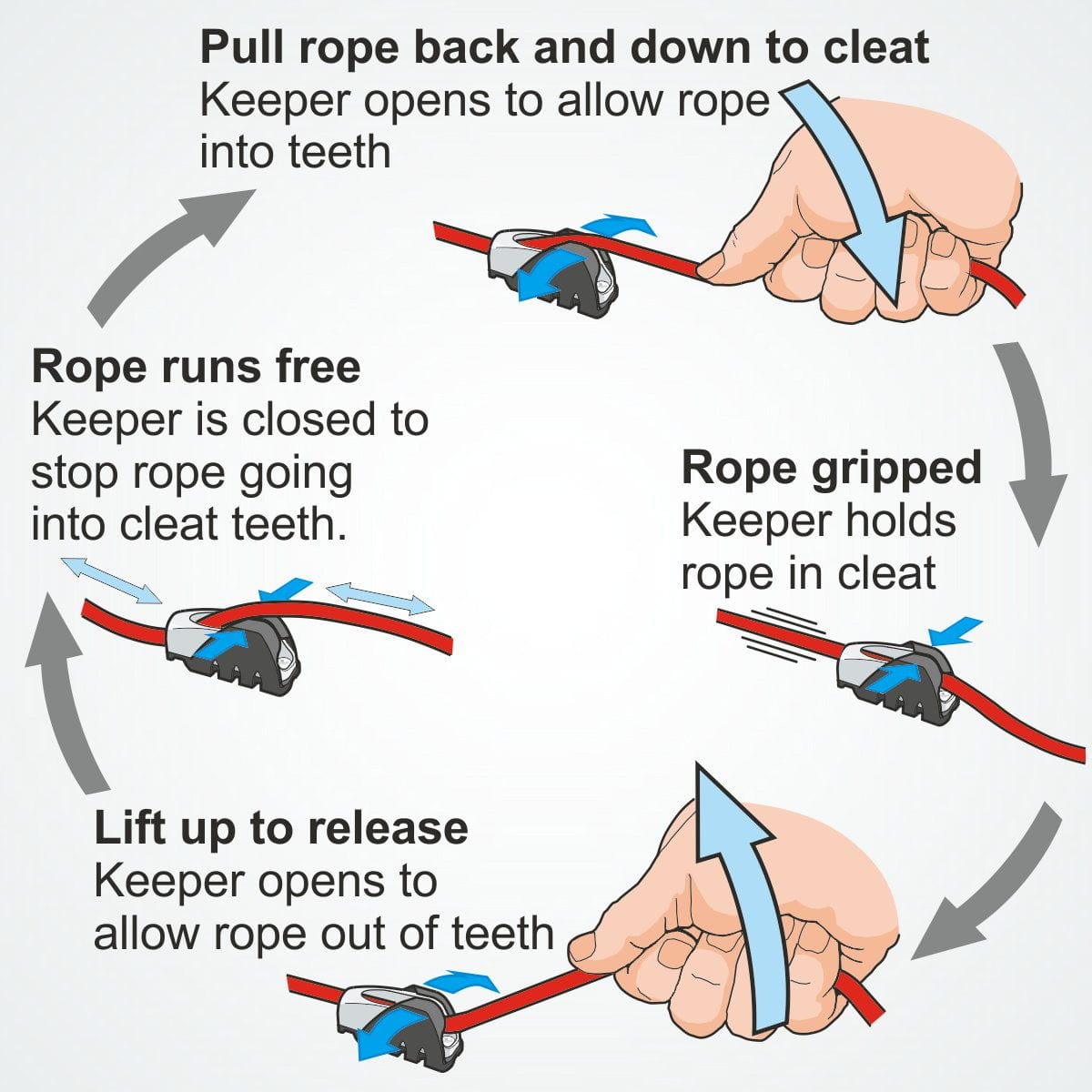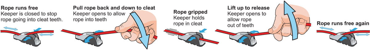 - Nieobciążona linka prześlizguje się przez uchwyt, nie zaczepiając się o zacisk grzebieniowy.