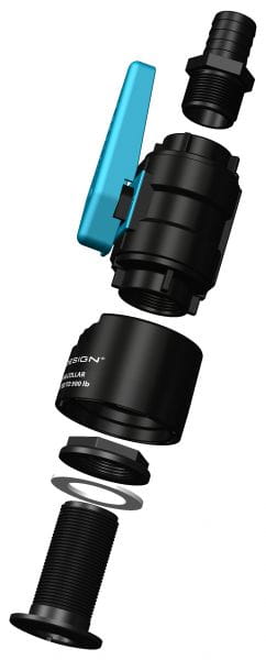 Cechą szczególną w porównaniu z konwencjonalnymi zaworami kulowymi jest opcjonalny kołnierz nośny, który chroni również zawór przed wyboczeniem lub przewróceniem w jego najbardziej wrażliwym punkcie i rozkłada nacisk na korpus. Do montażu zalecany jest klucz TruDesign.