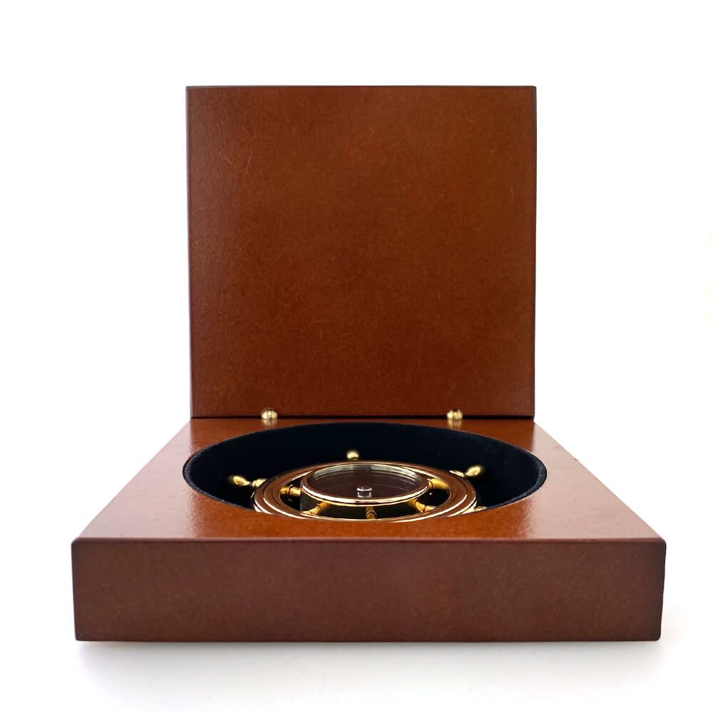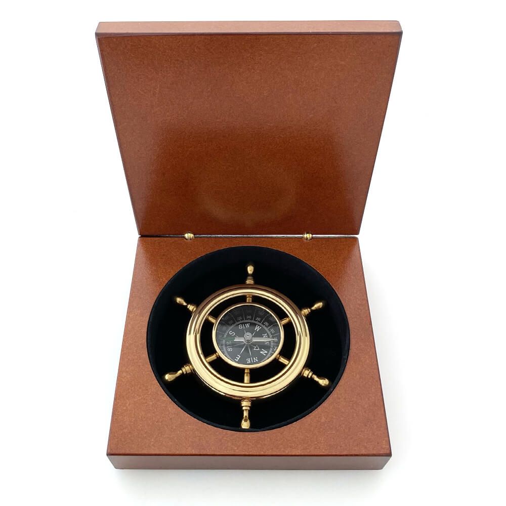 Kompas "koło sterowe" w drewnianym pudełku