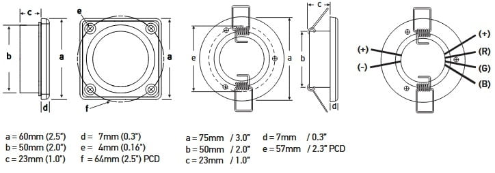 | Pobór mocy | 3W RGB / 0.25A @ 12V DC 3W białe / 0.25A @ 12V DC |