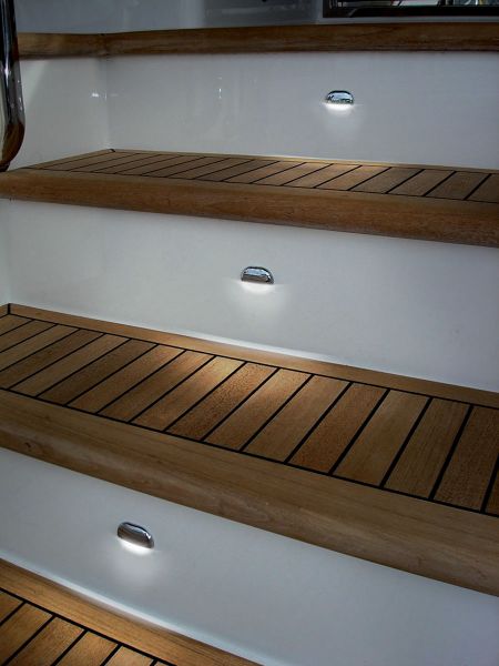 Wyjątkowo płaska i efektowna lampa schodowa LED o niskim poborze mocy, wodoszczelna, z kablem przyłączeniowym 120 mm.
