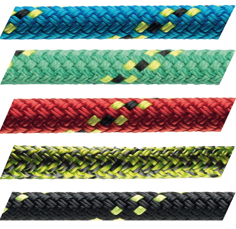 Rdzeń: Dyneema 12 skrętkowy SK78. Powłoka zewnętrzna: 24 skrętkowa z bardzo wytrzymałego poliestru.