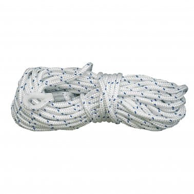 Poliestrowa lina cumownicza śr. 10 mm długość 30 metrów, z końcówką nylonową. Kolor biały/niebieski.