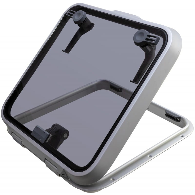 Luk z serii Ocean w rozmiarze 44 (509 x 509 mm) to solidne i niezawodne rozwiązanie dla jachtów, które wymagają trwałych elementów pokładowych o zwiększonej odporności. Aluminiowa rama została poddana anodowaniu, co skutecznie zabezpiecza ją przed korozją. Gruba, 12-milimetrowa szyba akrylowa w odcieniu szarym (dymionym) zapewnia trwałość, a jednocześnie ogranicza nagrzewanie wnętrza. Dźwignie ślizgowe umożliwiają wygodne uniesienie pokrywy i jej zatrzymanie pod dowolnym kątem do 95°, co zapewnia komfortową wentylację. Seria Ocean to klasyka wśród luków montowanych na jachtach pełnomorskich.