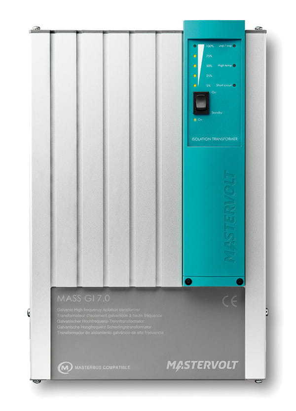 Mass GI zaopatrzony jest w najnowszą technologię przełączania wysokiej częstotliwości oraz w Soft Start dla szczytowych ładunków, gdy podłączony jest do sieci. Światła LED na obudowie wskazują ładunek i przeciążenie. Transformator może być kontrolowany zdalnie i posiada opcję automatycznego startu generatora, gdy pojawi się przeciążenie prądu AC. Mass GI jest 75% lżejszy i 60% mniejszy od innych transformatorów niskich częstotliwości.