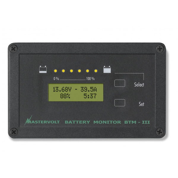 Informacje te zawierają odczyty napięcia, prądu, Ah, pozostałego czasu i pozostałej pojemności w procentach dla baterii głównej. Masterlink BTM-III (12/24V DC) posiada wskaźniki LED do zdalnego monitorowania poziomu baterii. Dobrze oświetlony ekran LCD screen wyświetla także bezpośrednie dane online, lub informacje historyczne. na pojedynczym ekranie mogą być pokazywane stan naładowania i napięcie trzech banków równocześnie.