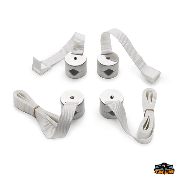 Zestaw nadaje się do rur o średnicy od 22 mm do 30 mm. Składa się z dwóch par białych zacisków ABS z odpowiednimi paskami, wyposażonych w zatrzask.