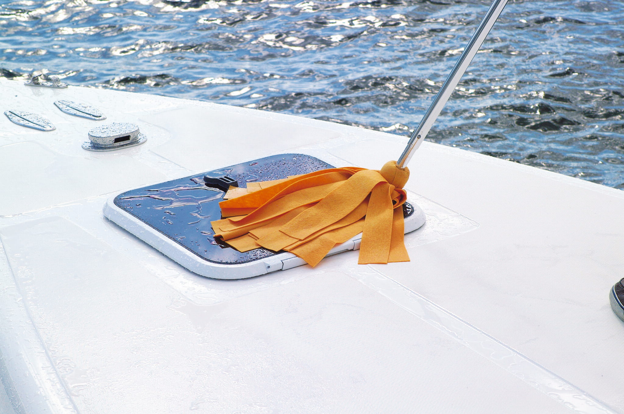 Mop wykonany jest z materiału Dragon Glide™ z paskami o szerokości 5 cm dla maksymalnej chłonności. Mopy Aquazorber są przeznaczone do szybkiego i łatwego suszenia pokładów, powierzchni malowanych i z włókna szklanego. Mopy Aquazorber są zalecane do suszenia, a nie czyszczenia lub szorowania, szczególnie na powierzchniach antypoślizgowych. Materiał nie jest narażony na pleśń ani grzyby.