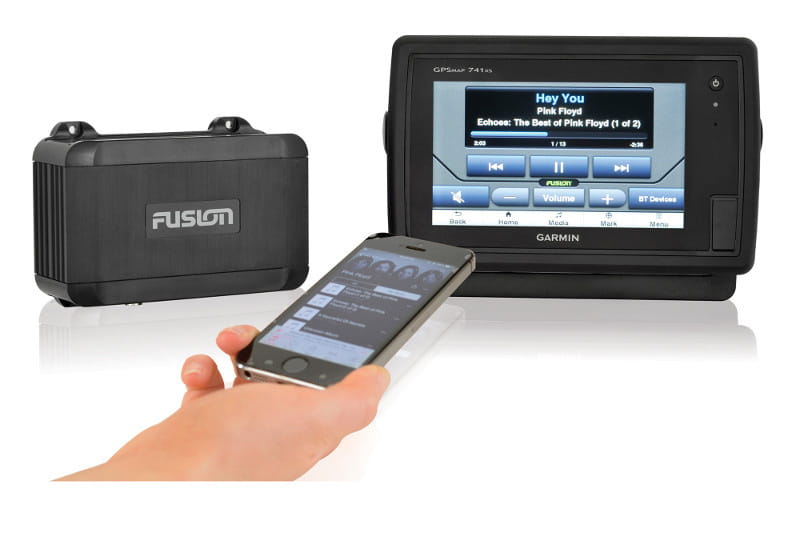 Pracując przez zaawansowany przewodowy protokół FUSION-Link poprzez NMEA 2000, BB100 będzie współpracował z dowolnym wspieranym wskaźnikiem wielofunkcyjnym poprzez kontrolę na ekranie. Nowo zaktualizowana aplikacja do zdalnej kontroli FUSION-Link dla urządzeń Apple i Androida pozwala na szybka kontrolę centrum rozrywki wewnątrz zasięgu Bluetooth na pokładzie jachtu.